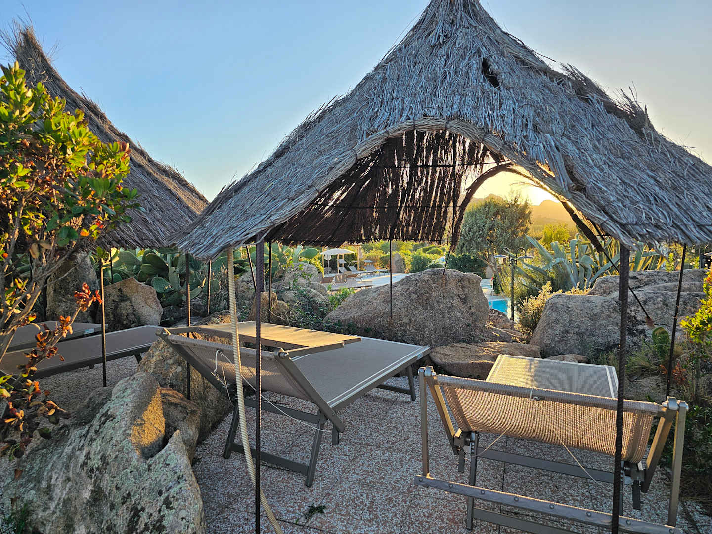 Kleiner Bereich am Pool mit Liegen