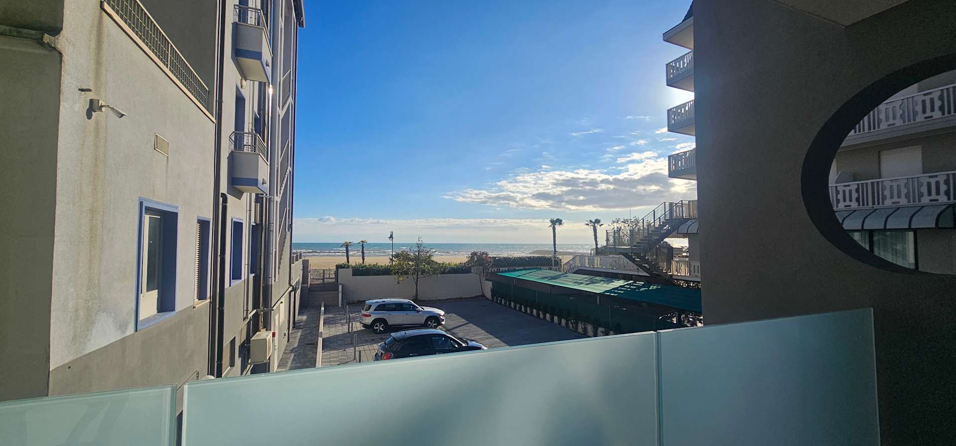 auf den Parkplatz und Strand / Meer vom Apartment Blu Horizon