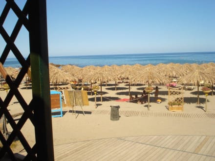 Blick auf den Strand von der Strandbar