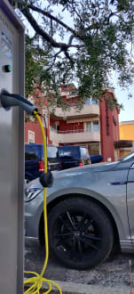 Ladesäule mit Blick aufs Haus