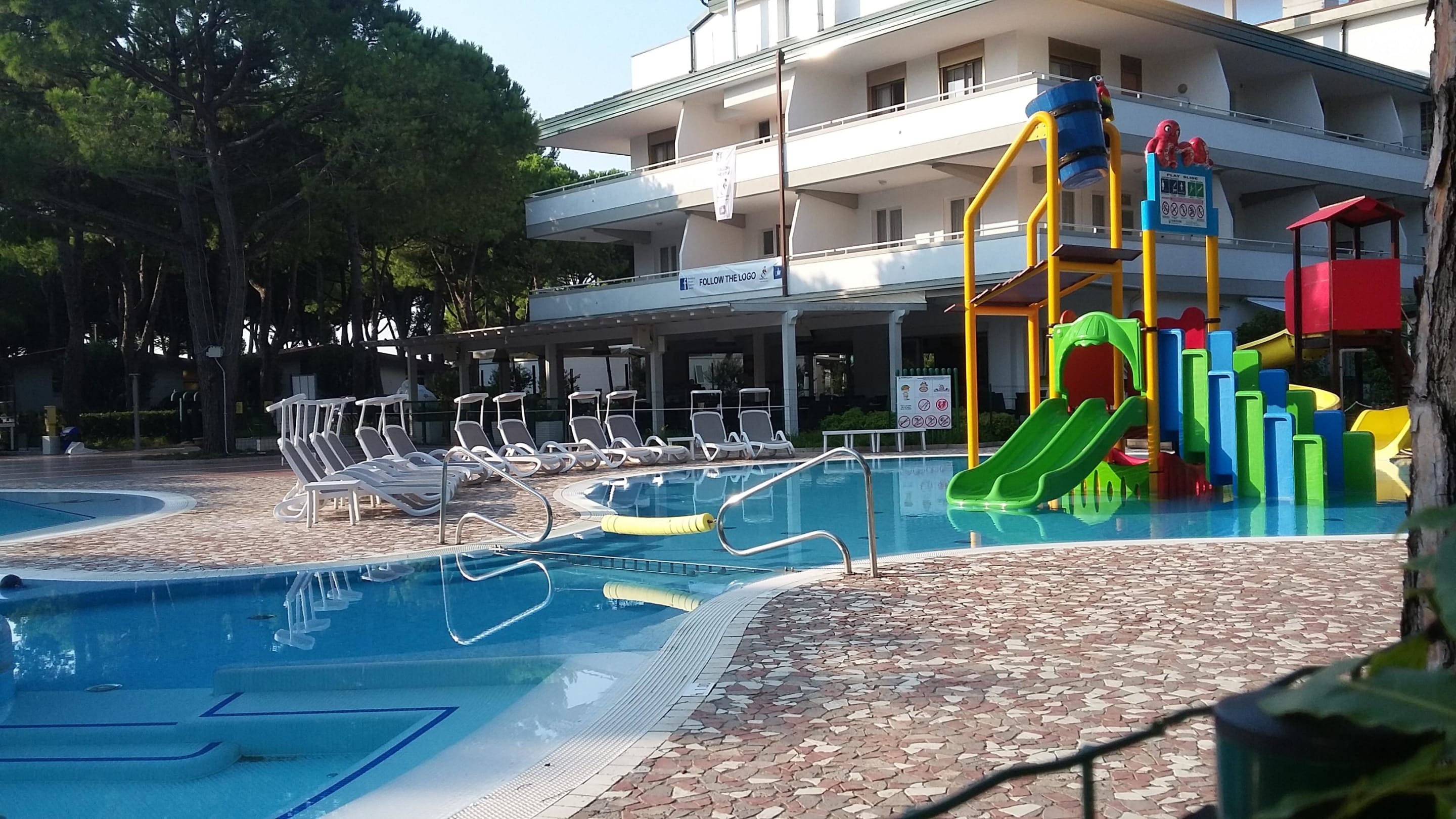 Pool mit Pizzaria im Hintergrund