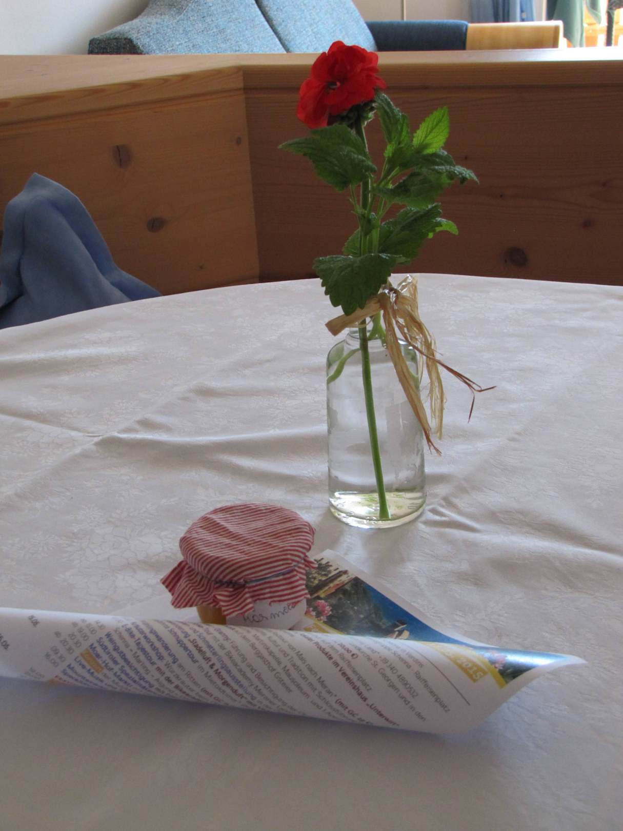 Empfangen mit Blumengruß und köstlicher Marmelade