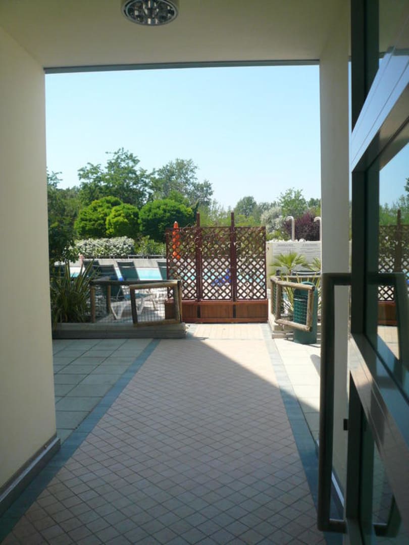 Ausblick vom Treppenhaus zum Pool