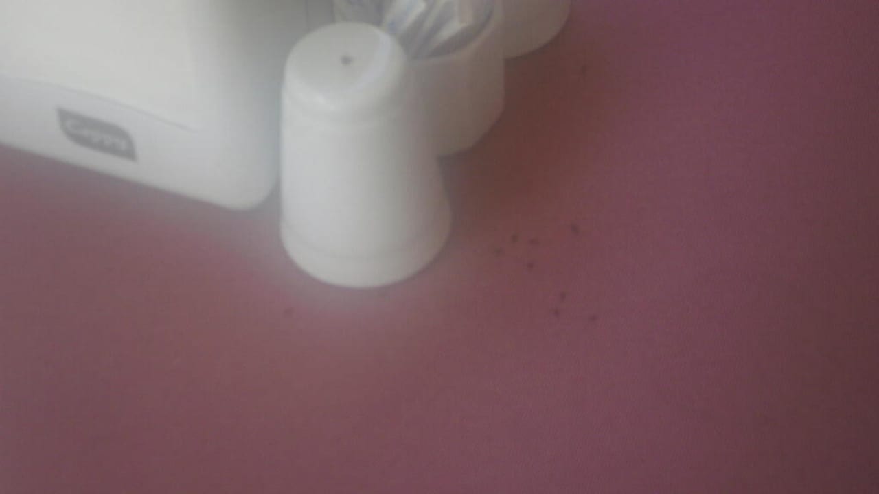 Zahlreiche Ameisen auf dem Tisch neben Salzspender