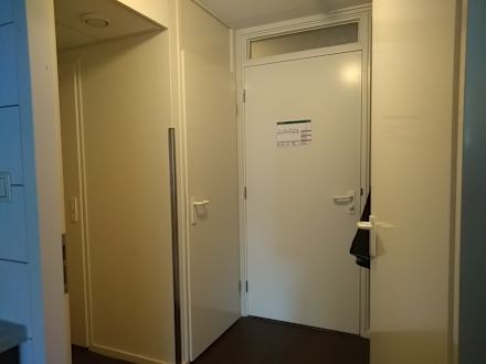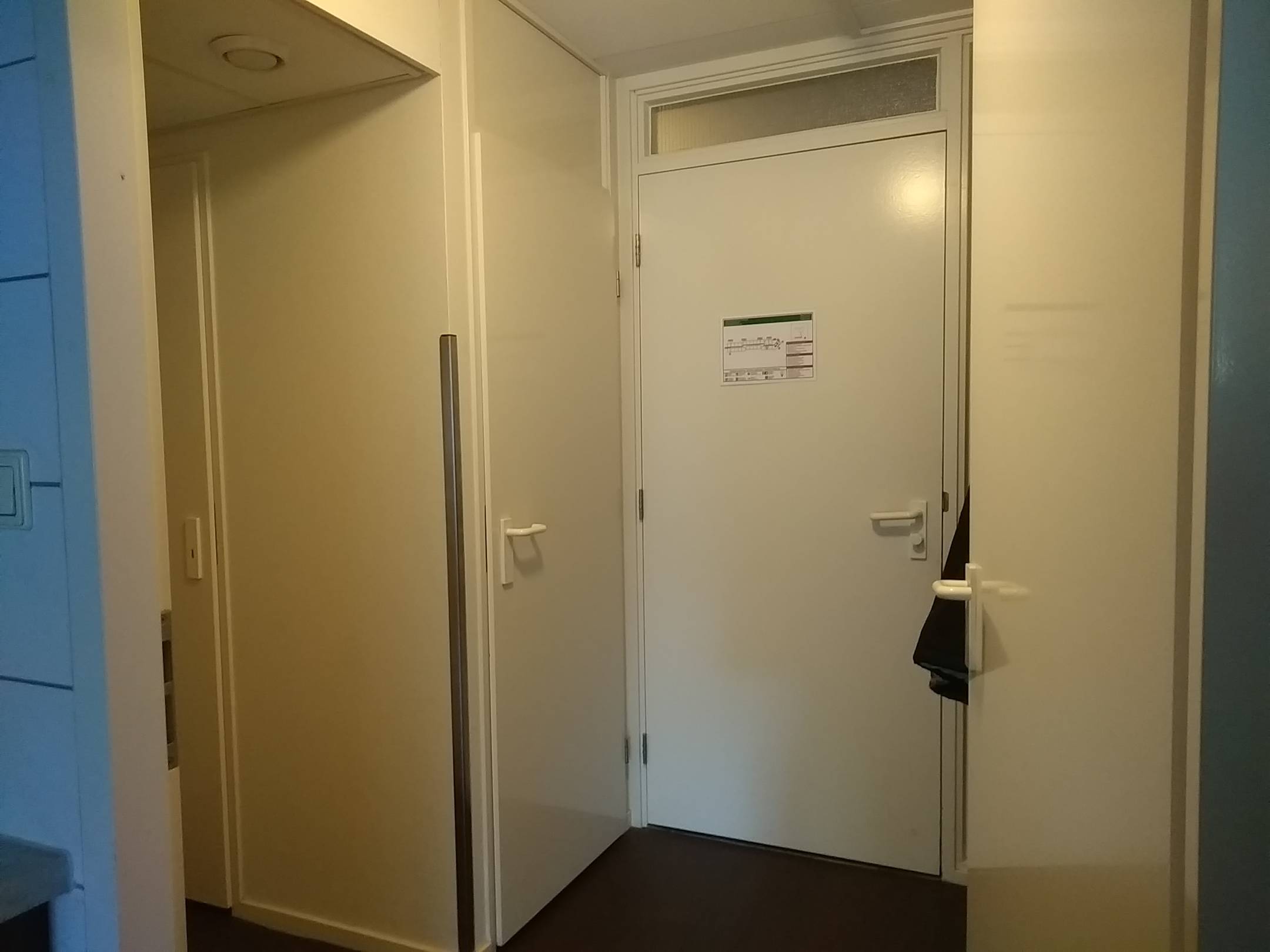 Blick auf die Appartement-Tür und den Vorraum aus dem Wohnzimmer
