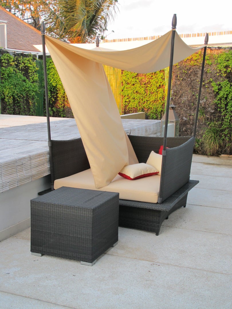 Liege vor dem Zimmer mit Ausblick zum Pool