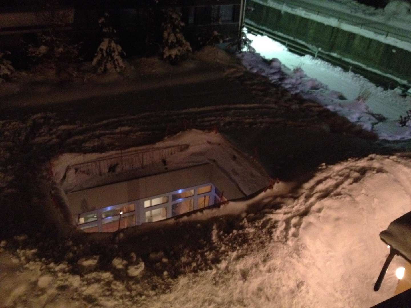 Blick vom Balkon auf den unterirdischen Wellnessbereich