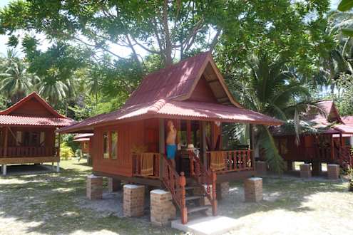 Einfacher Bungalow mit AC in erster Reihe