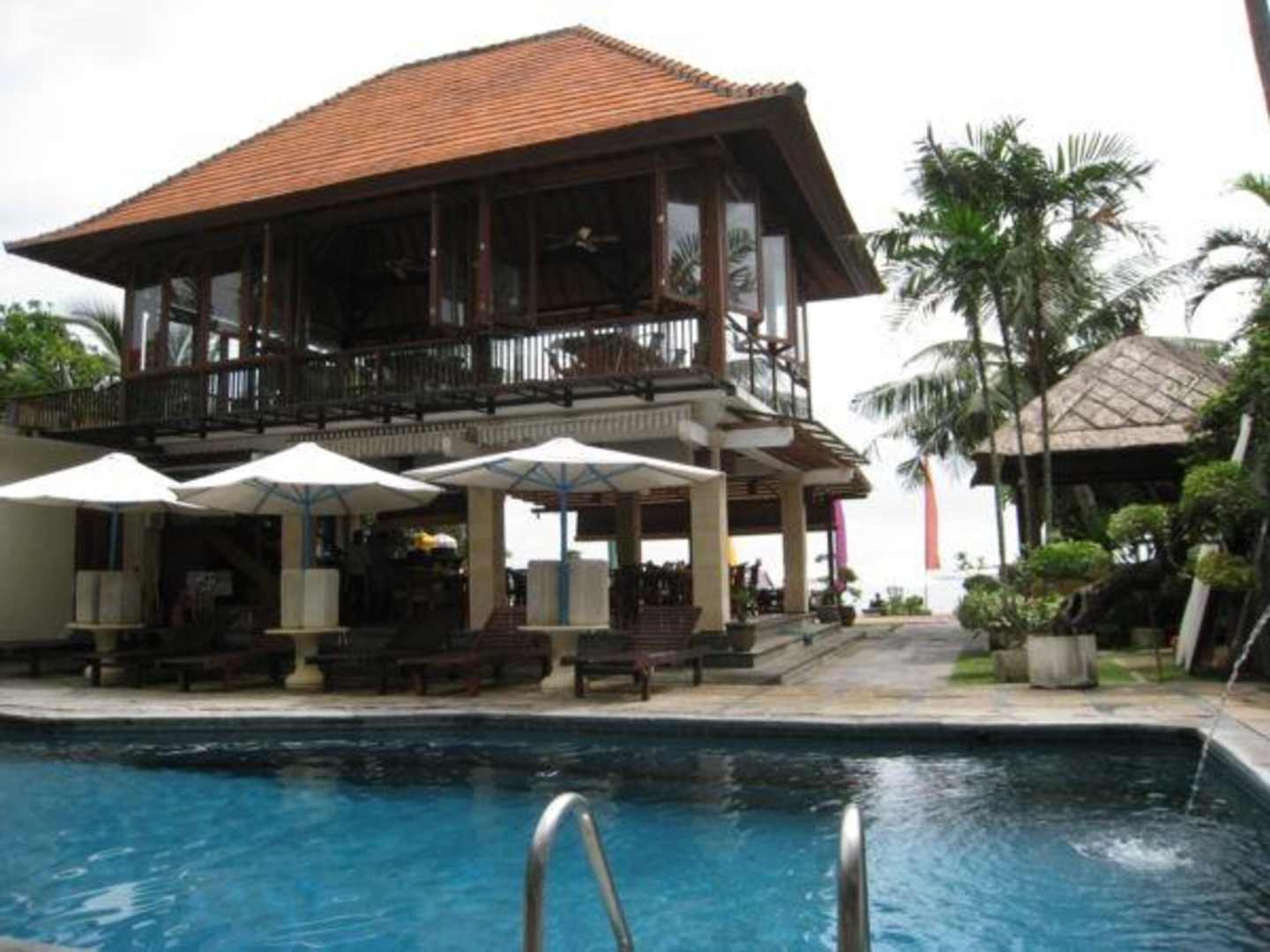 Respati Pool3Blick vom Pool auf das Restaurant.