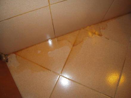 Kleine Wasserlache aufgrund des WaschbeckensKleine Wasserlache aufgrund des tropfendem Waschbeckens im Bungalow