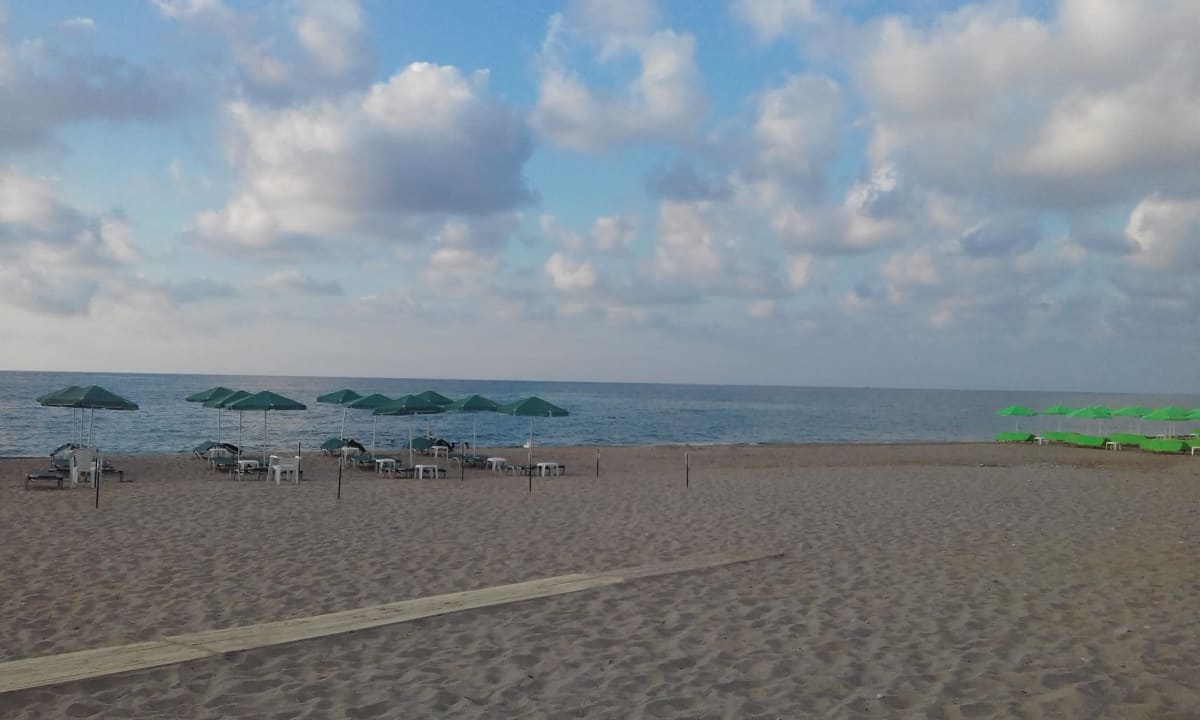 Die dunkelgrünen Liegen und Schirme sind für das Hotel bestimmt, muss man aber nicht wirklich wählen.