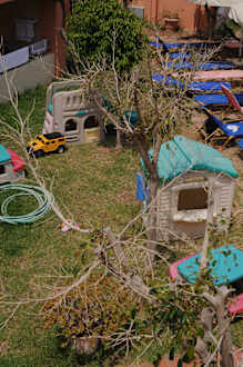 Grünanlage im Hotel mit "Kinderspielplatz"