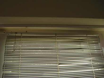 Die Metall Jalousine befand sich in schlechtem Zustand und knallte sogar einmal auf den Boden, als die Tür von außen mit einem notwendigen Ruck geschlossen wurde. Sie ist wohl schon öfters heruntergefallen.