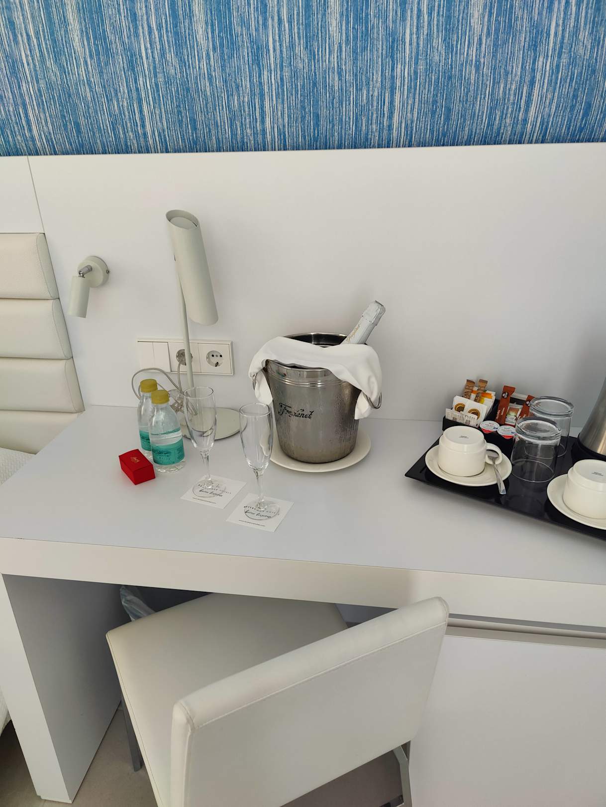 Zimmer im Sunset-Gebäude mit angerictetetem Cava