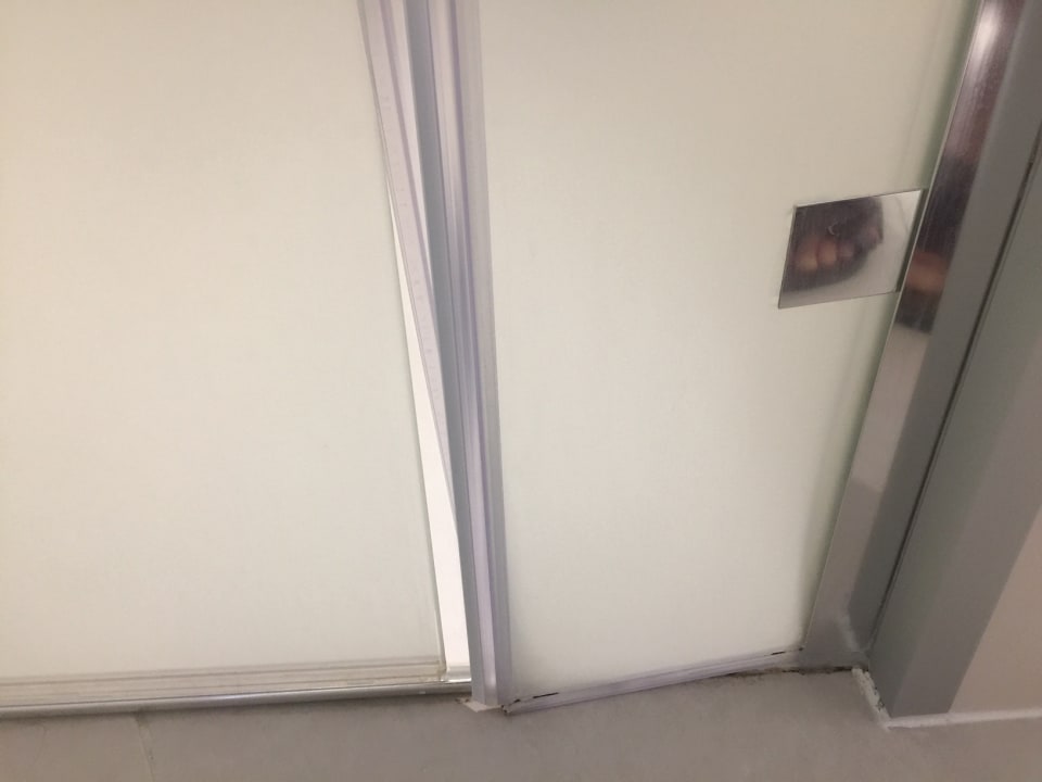 Das wackelige Seitenteil der Duschkabine