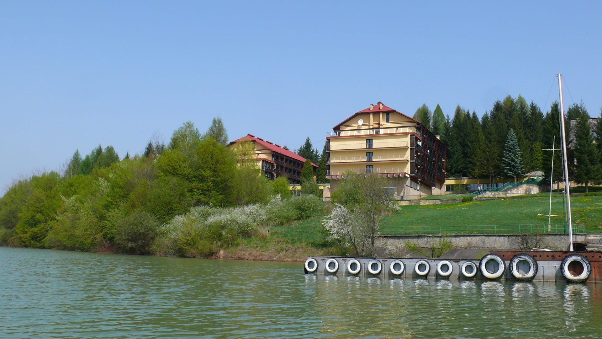 Przystań z kajakami, rowerami wodnymi i łódkami