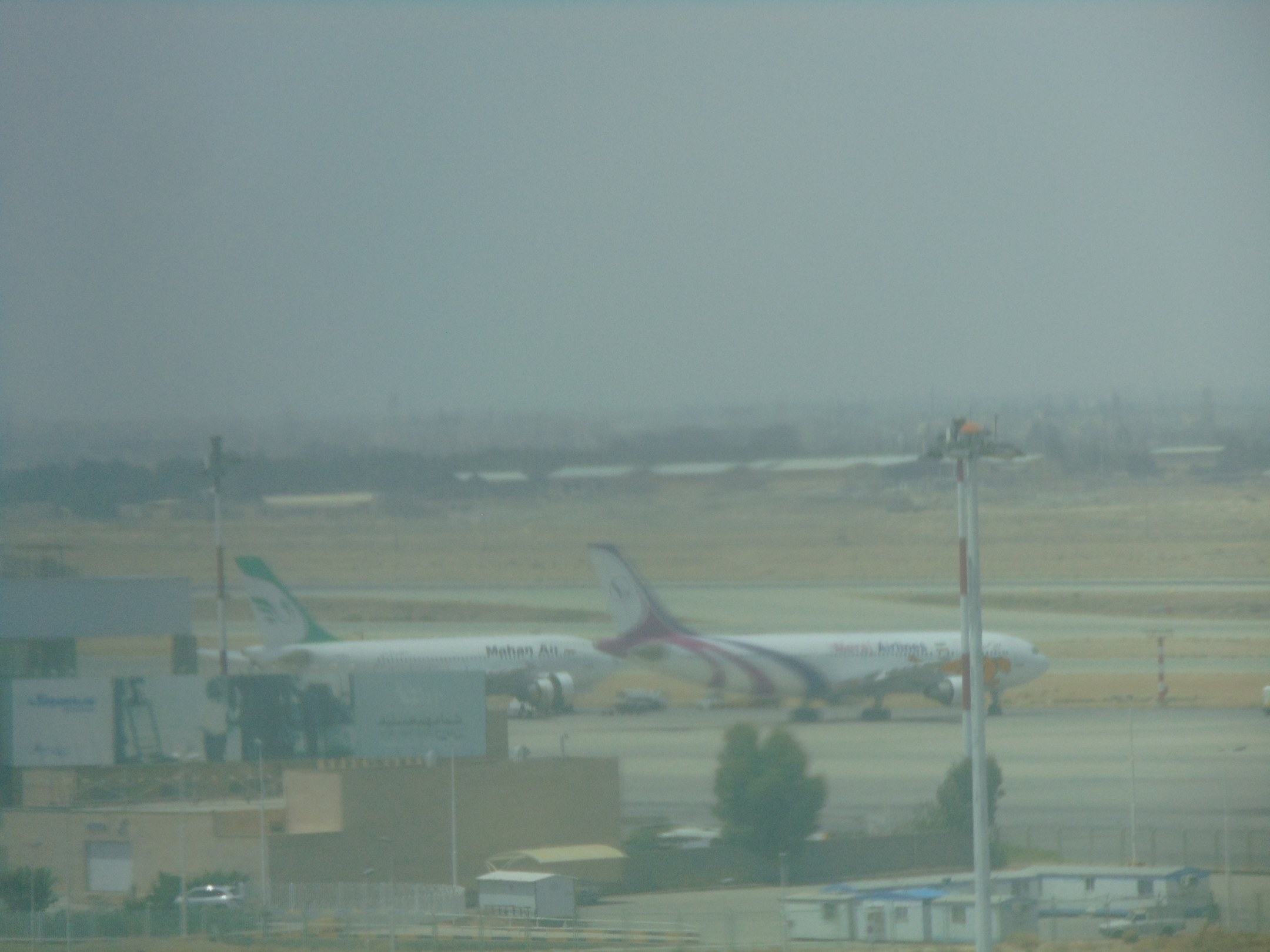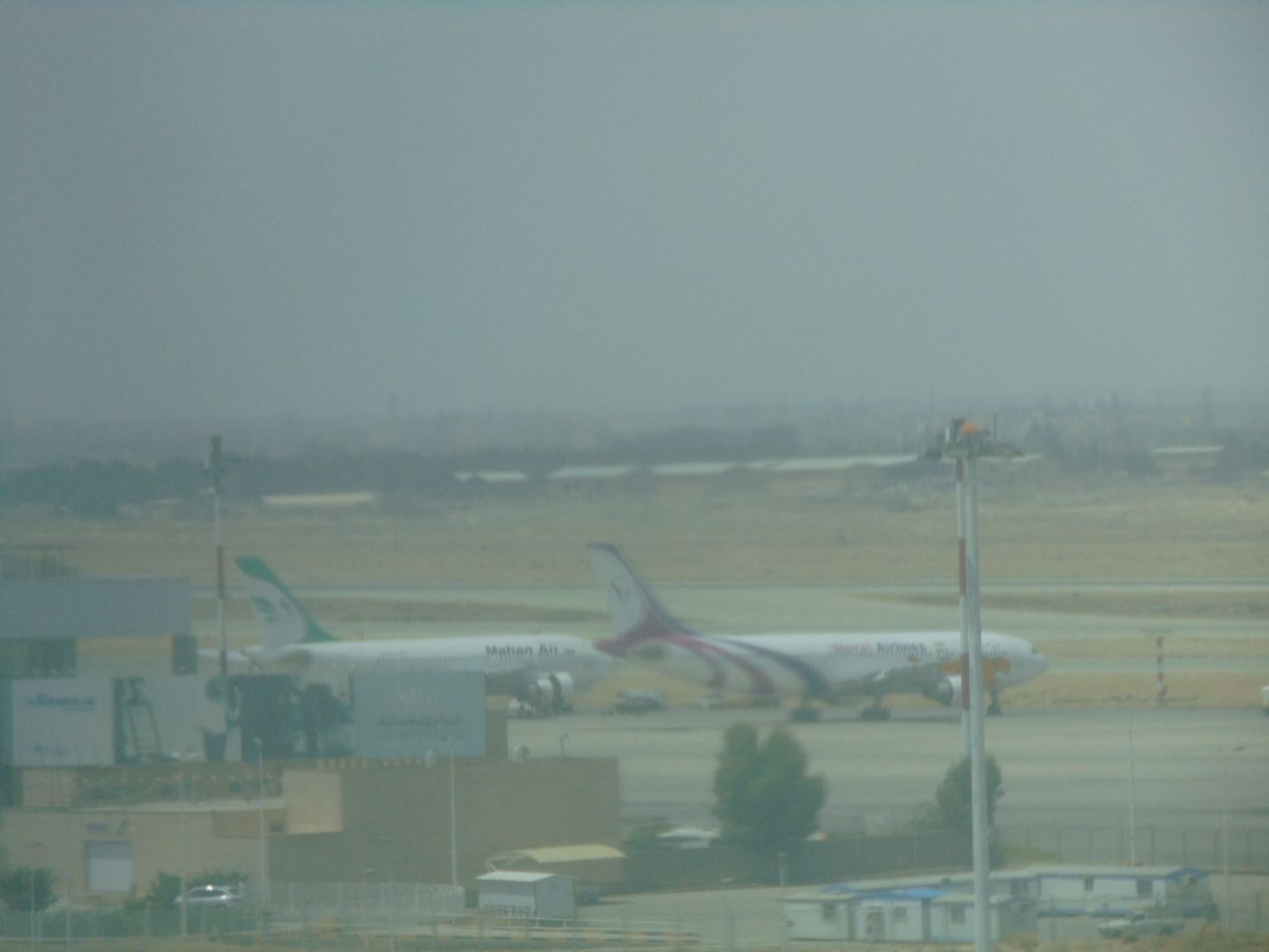 Ausblick auf den ggü.-liegenden Flugahfen IKA, mit "seltenen" Fliegern...