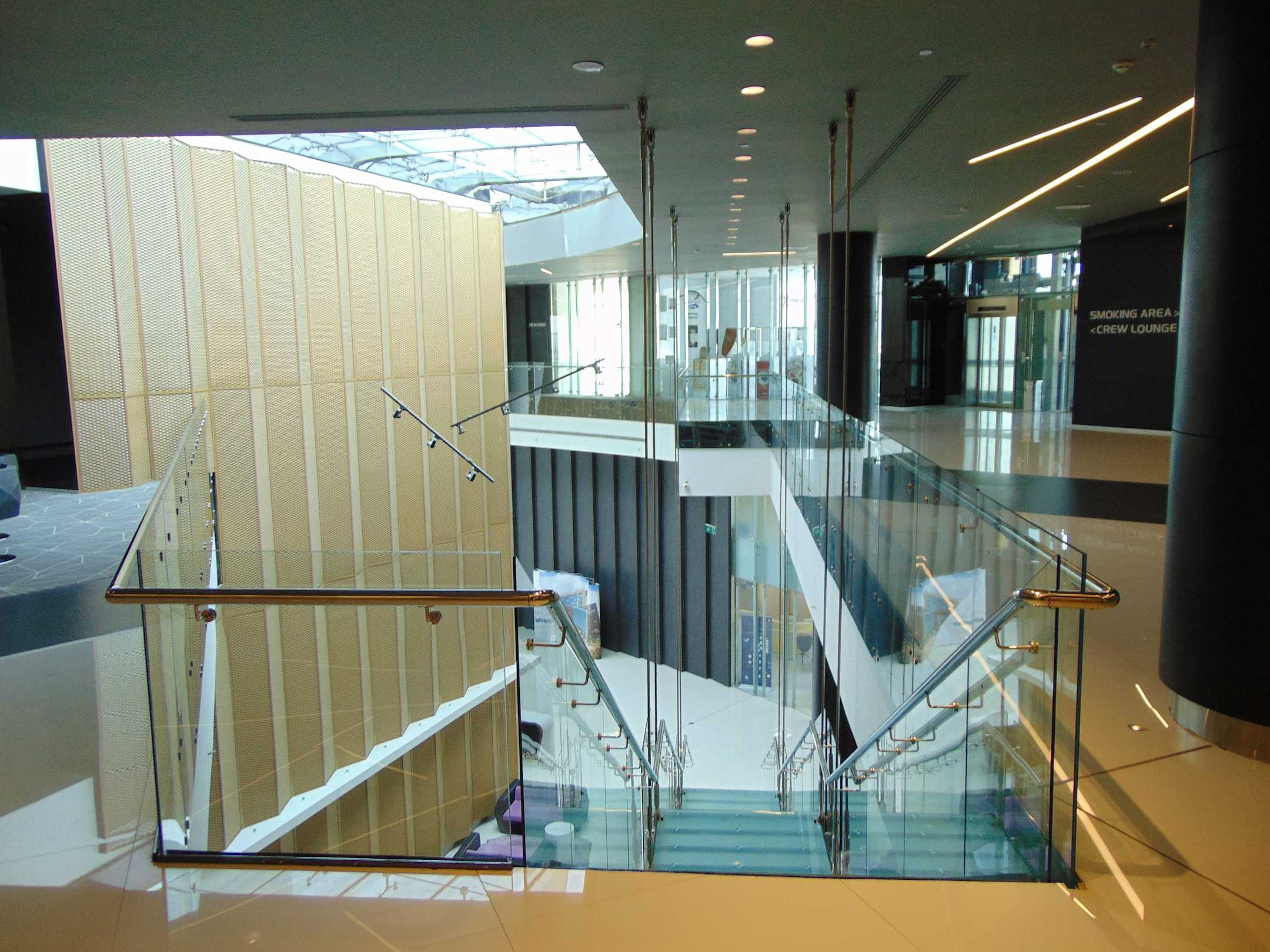 Auf der weitläufigen M2 Ebene (Mezzanine Floor) Treppenabgang zur hinteren Lobby