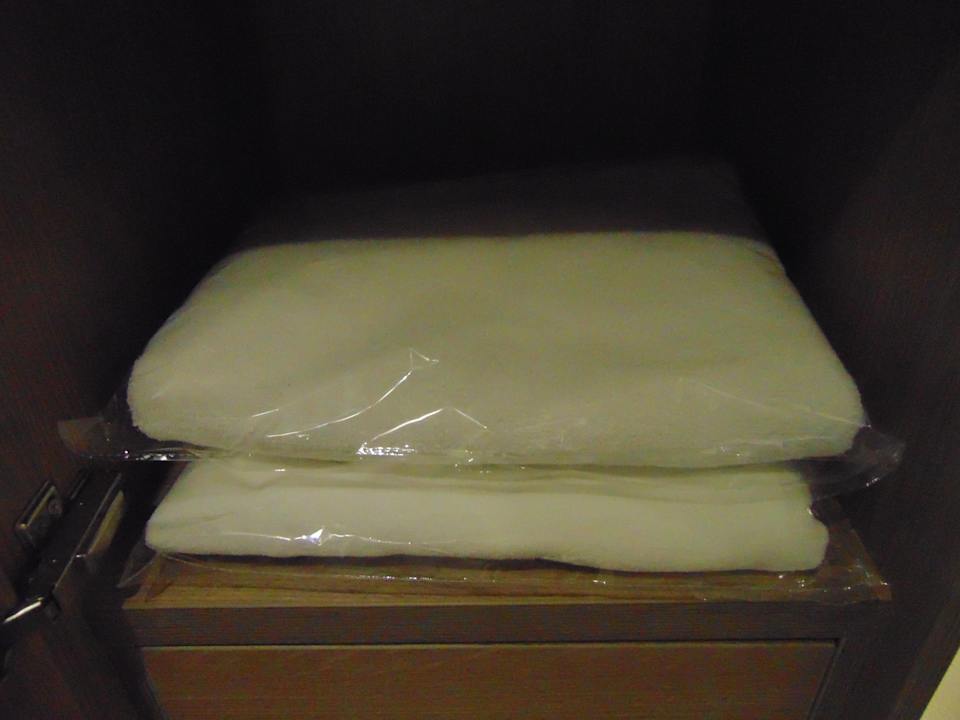Handtücher, einzeln in Plastik verpackt, während der Corona Pandemie