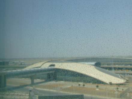 AusblickAusblick auf den Flughafen IKA, direkt gegenüber; die Fensterscheibe war etwas verschmutzt bzw. verstaubt.