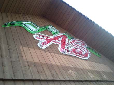 Widok z balkonu na logo Pensjonatu