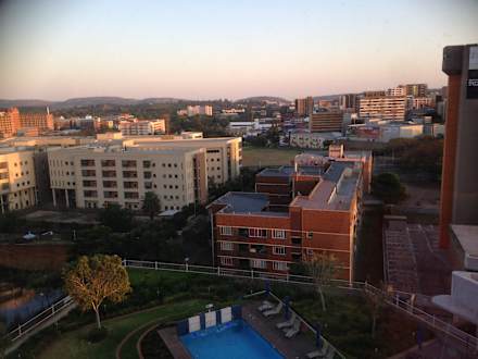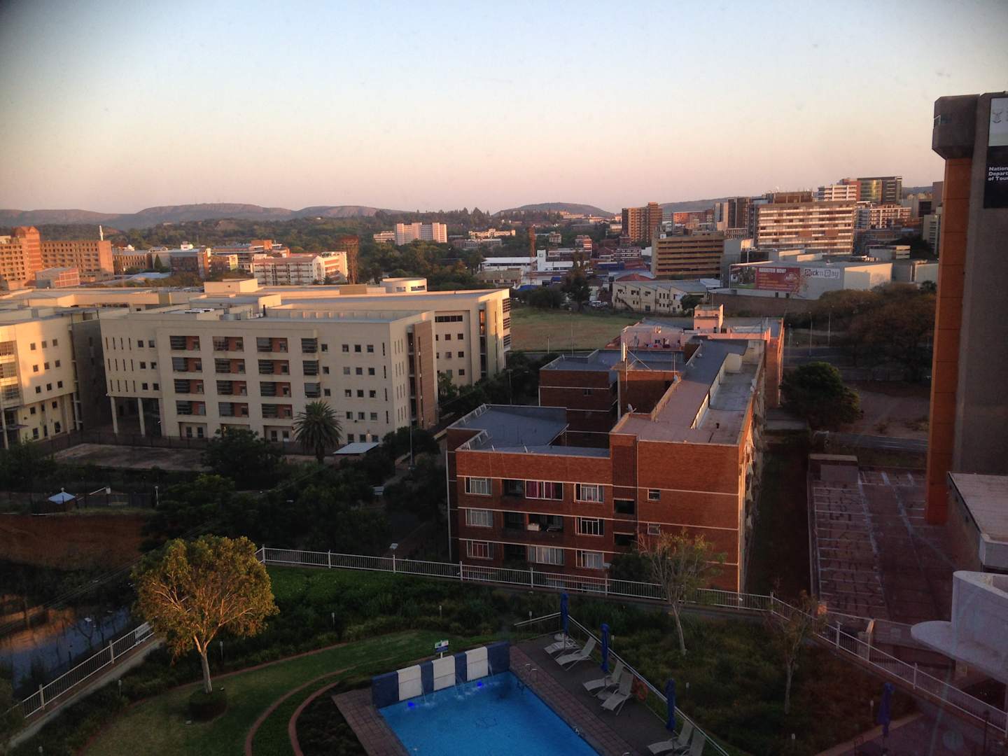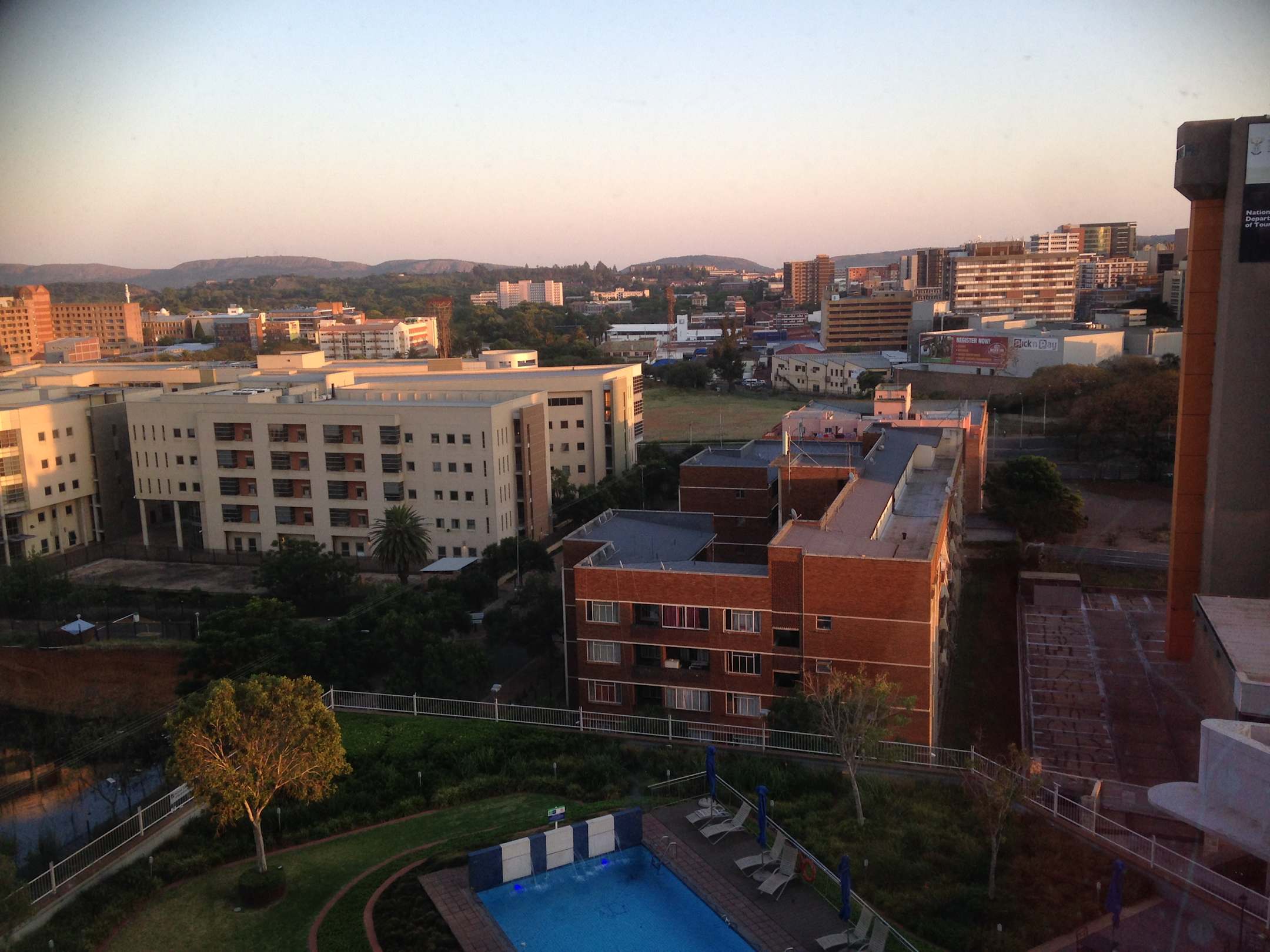 Blick vom Hotel über Pretoria beim Sonnenaufgang
