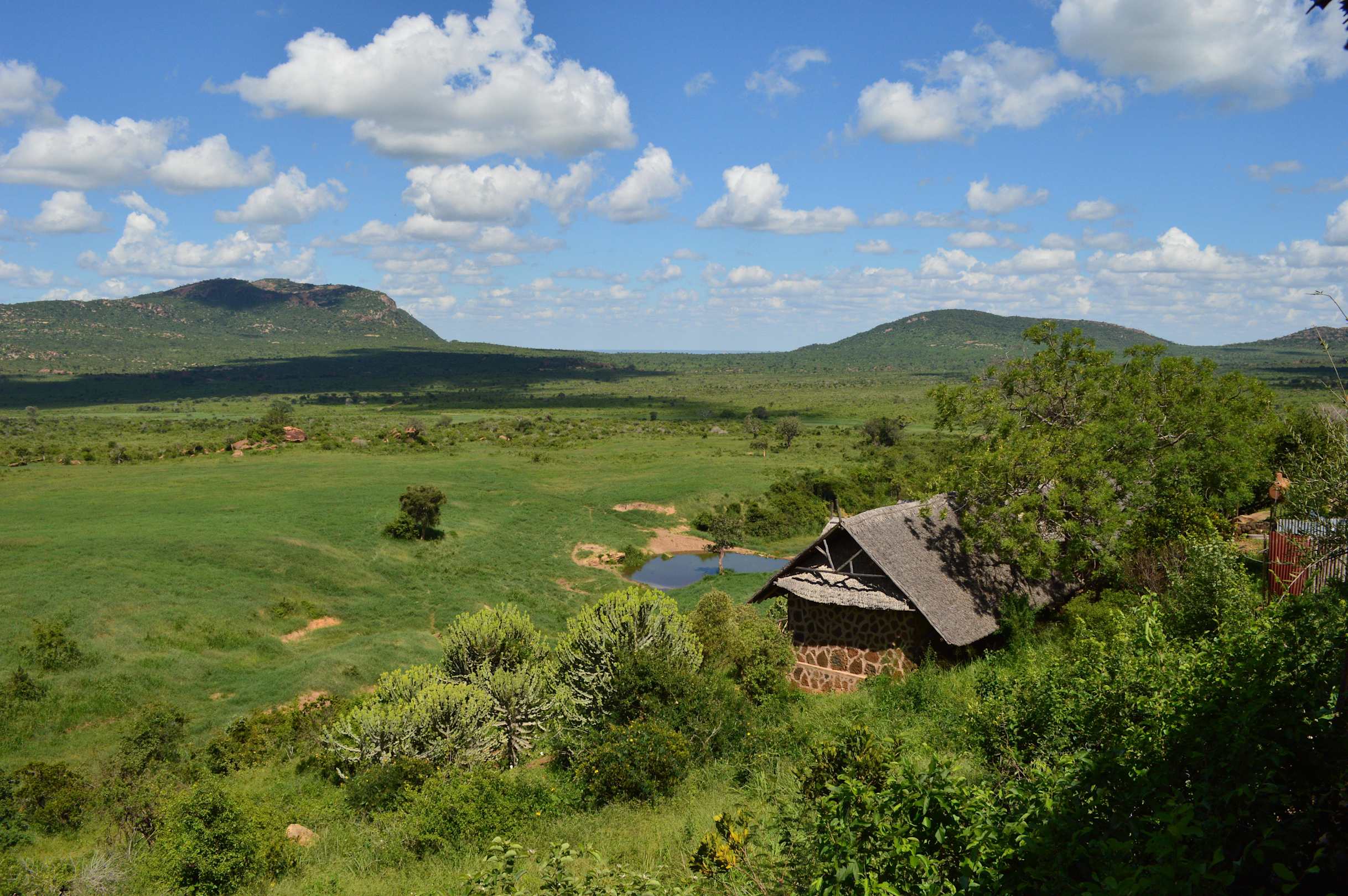 Ausblick von der Terrasse Richtung Wasserloch.
