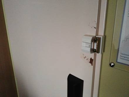 Beschädigte Tür im teilrenovierten Zimmer