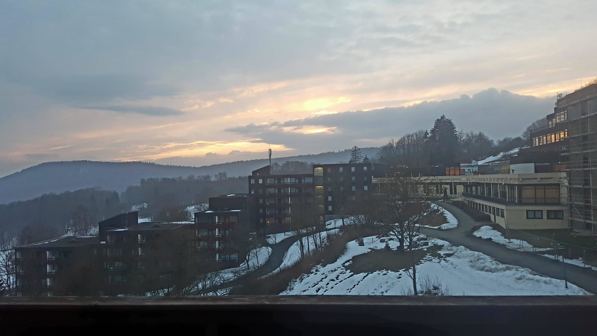 Sonnenuntergang und Blick auf die Hotelanlage