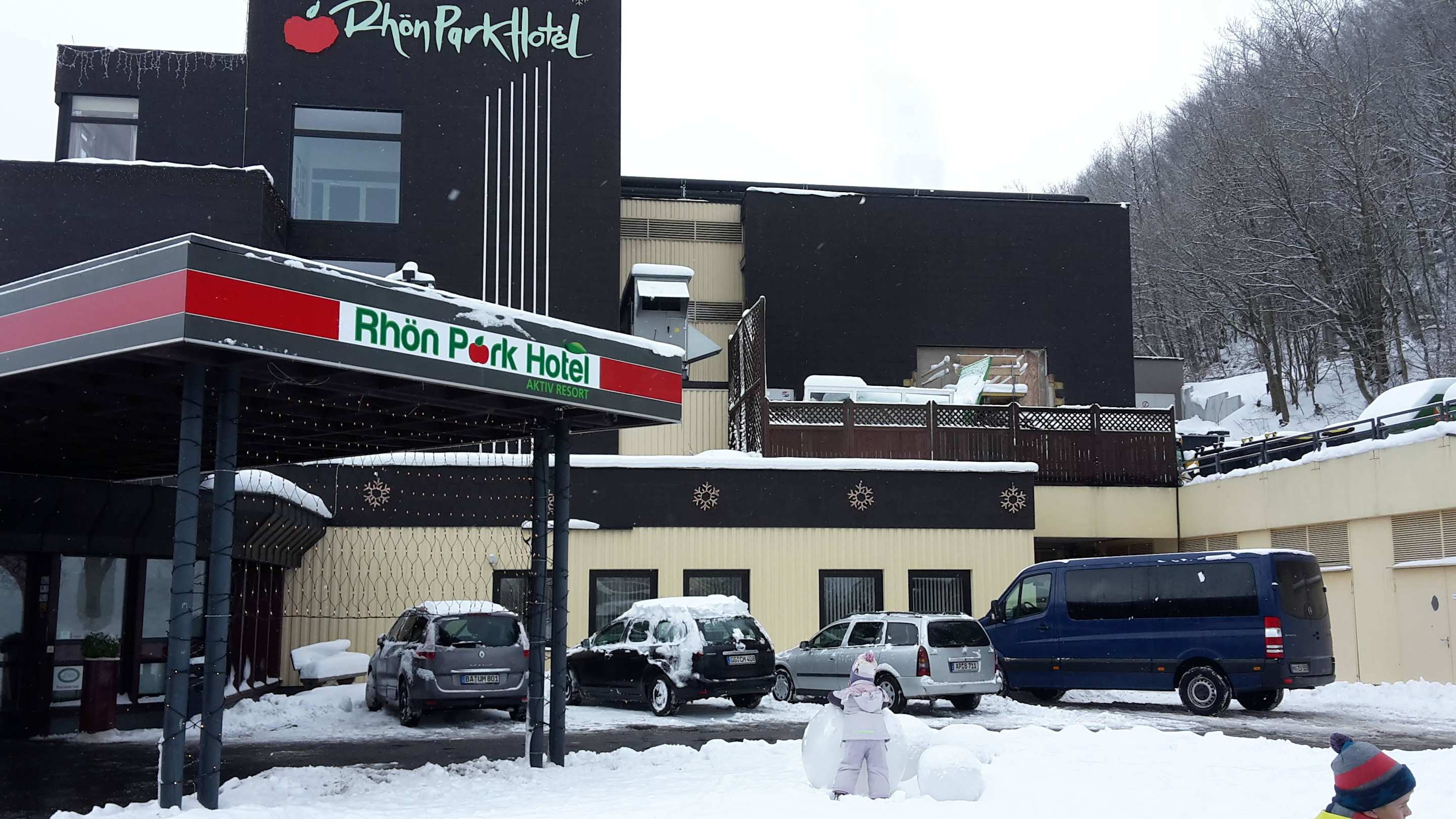 Der verschneite Hoteleingang