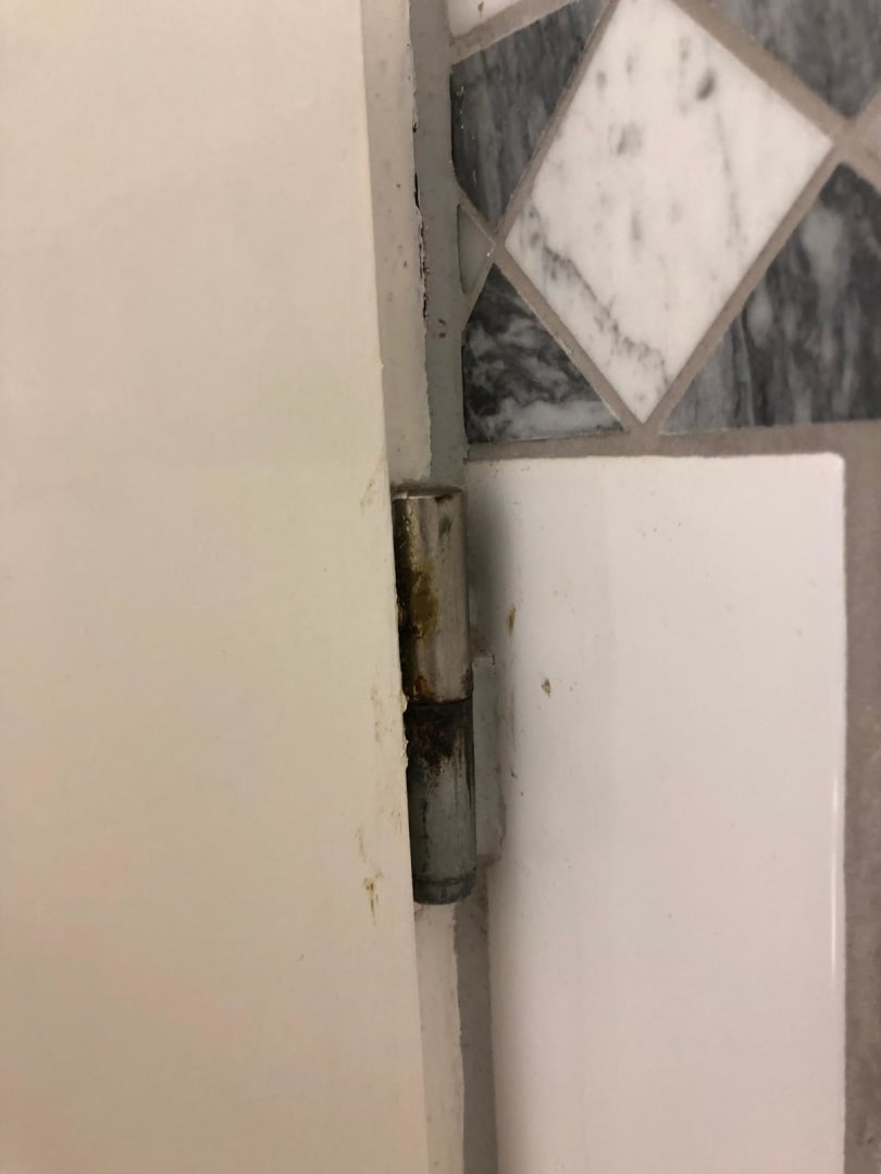 verrostete Schaniere an der abgenutzten Tür