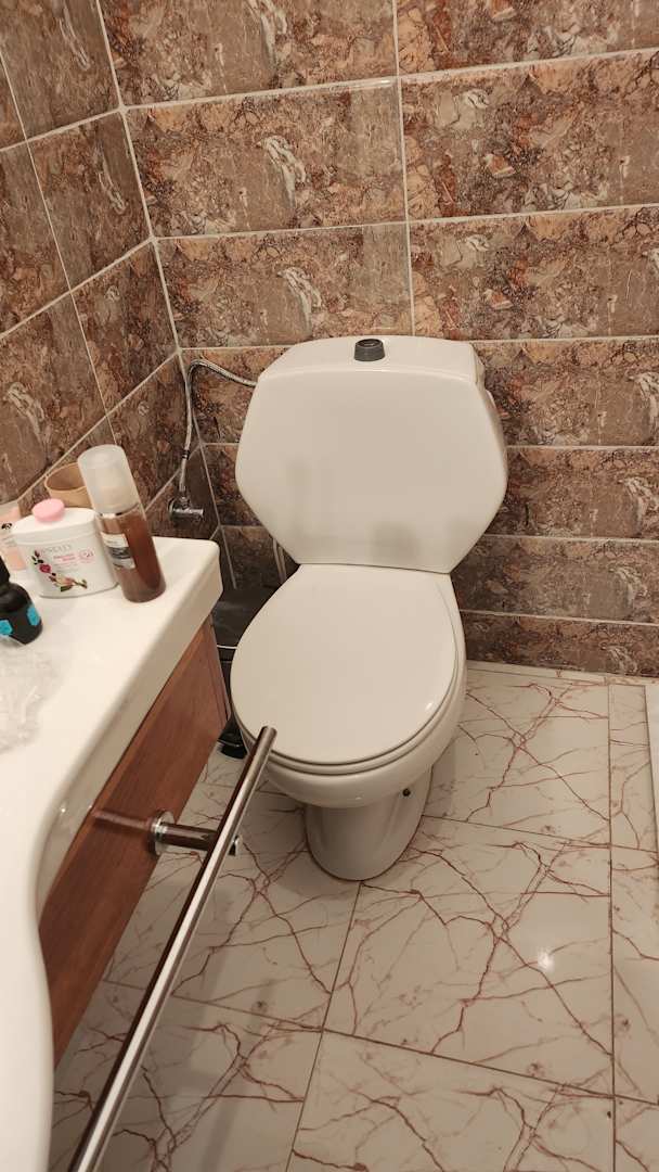 Der Abstand vom Klo bis zum Schrank war mehr als knapp. Man musste sich schräg drauf setzten