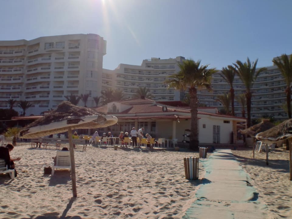 Blick vom Meer auf das Hotel