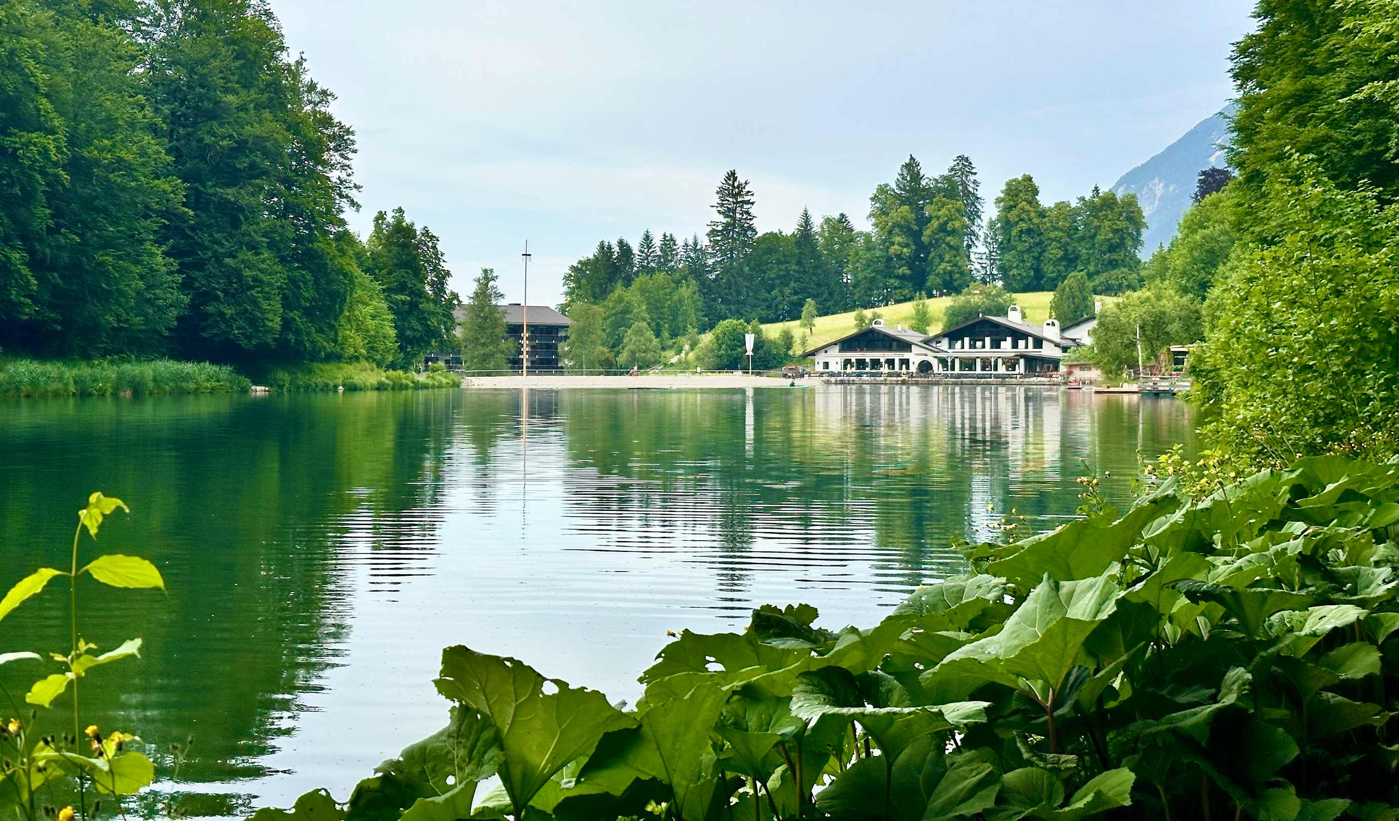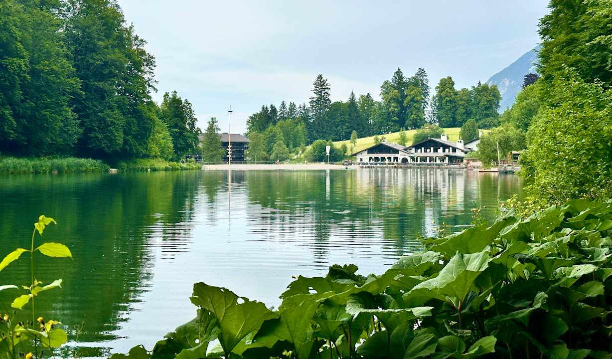 AußenansichtBlick vom See auf das Seehaus (unten Gastronomie, oben Suiten etc.) und links davon, leicht verdeckt das Hauptgebäude.