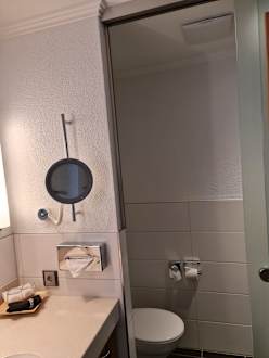 Badezimmer mit separatem WC mit Glasschiebetüre (Landhaus Krone)