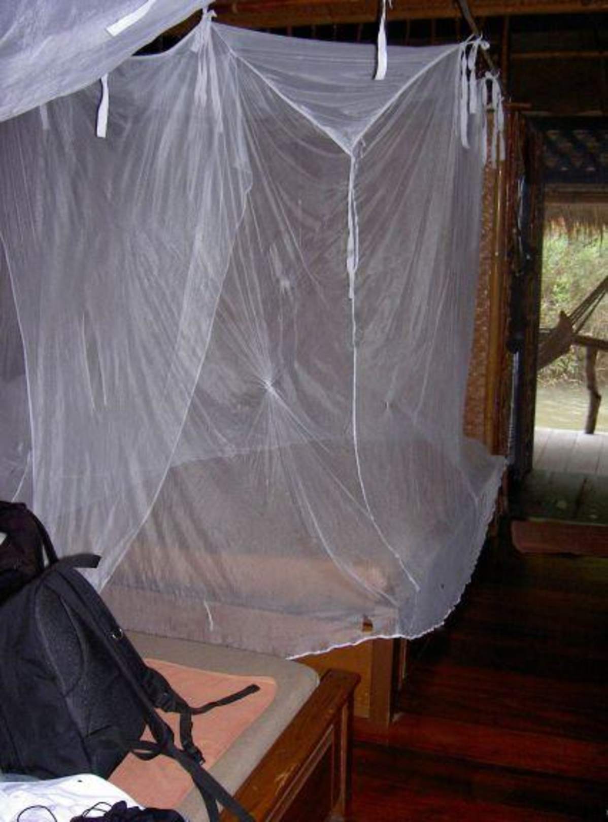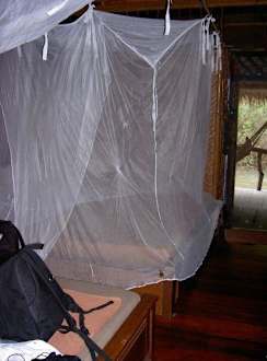 hier mit heruntergelassenem Moskitonetz.
