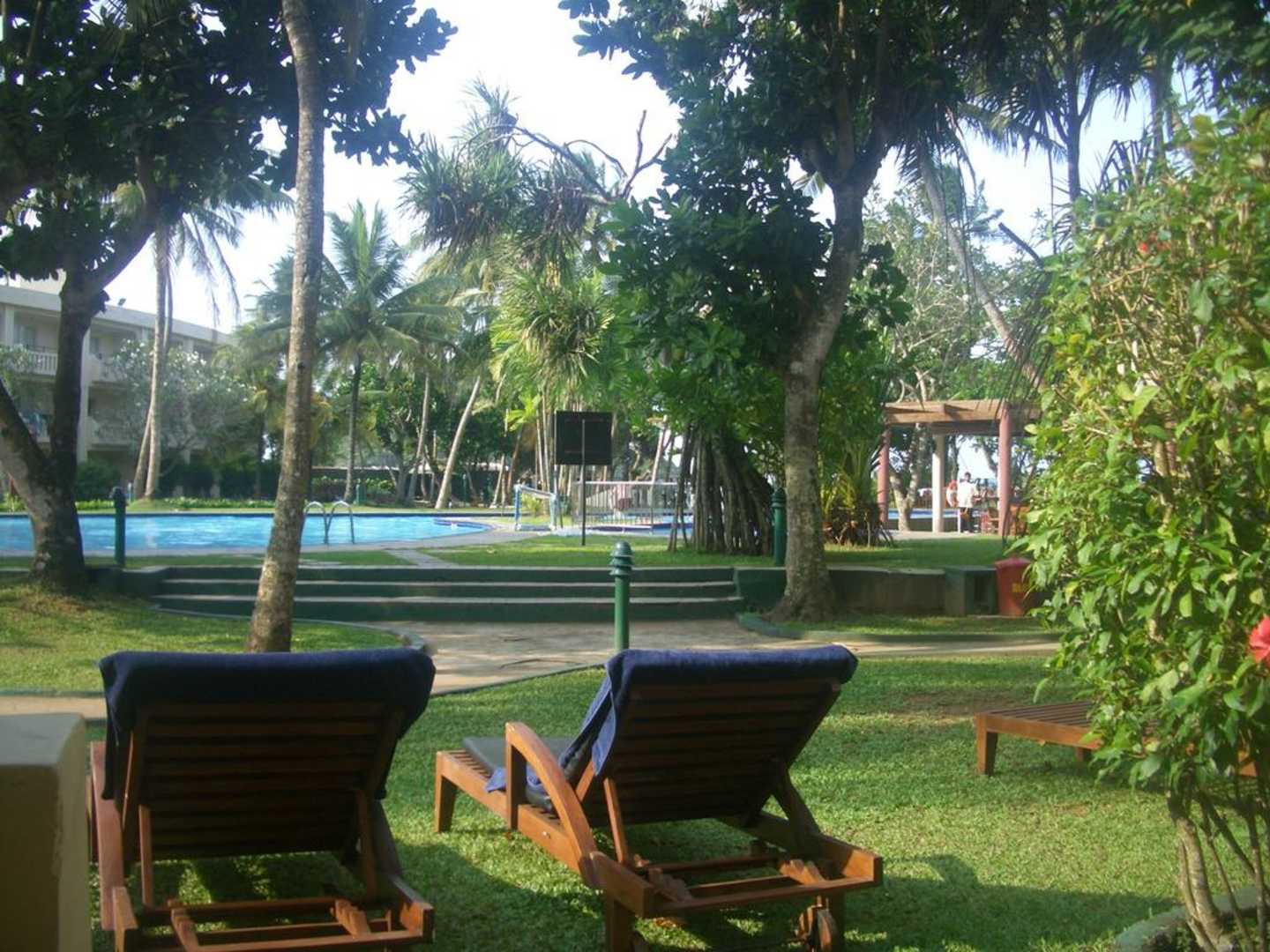 Man sieht den kleinen Pool vom Zimmer aus. Und natürlich unsere schönen Liegen.