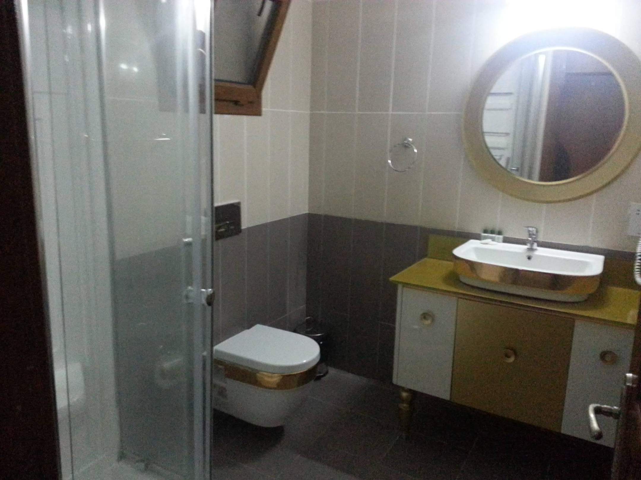 Badezimmer mit Radio in der Dusche