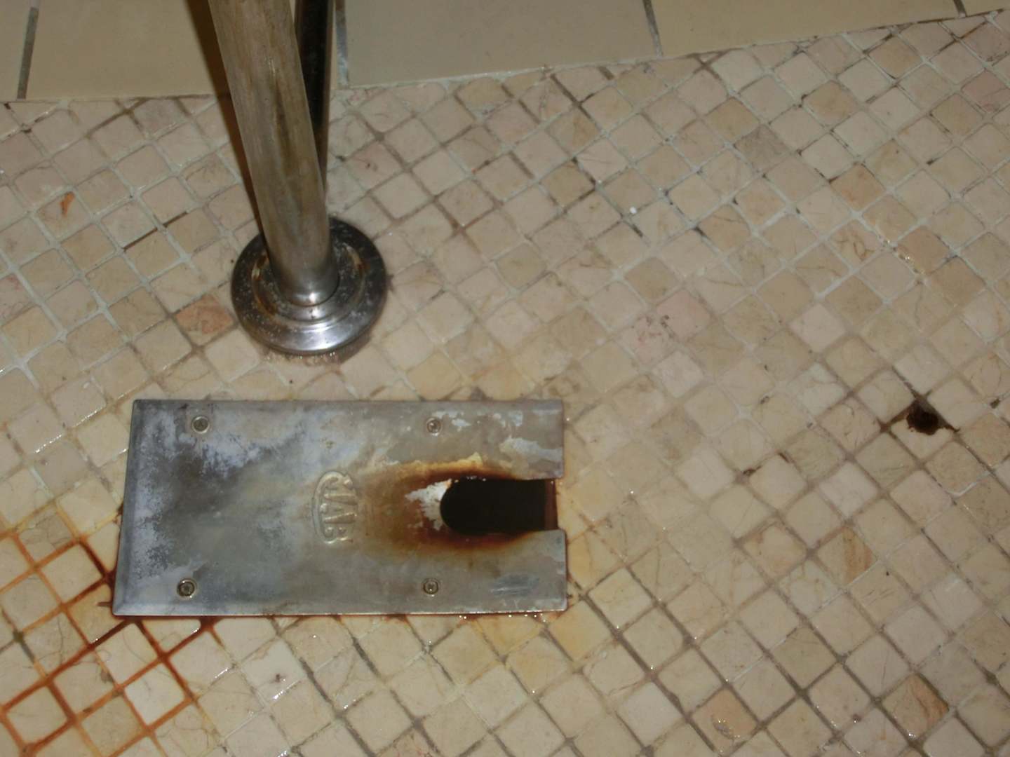 Pool EingangBlech scharfkantiges Rostloch direkt am Einstieg