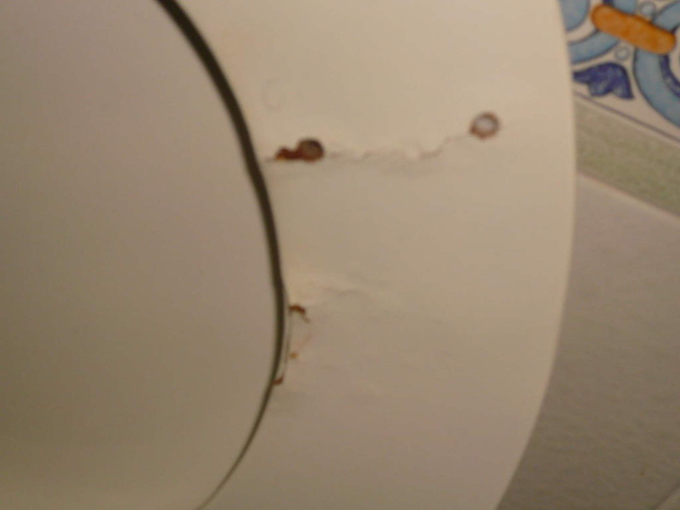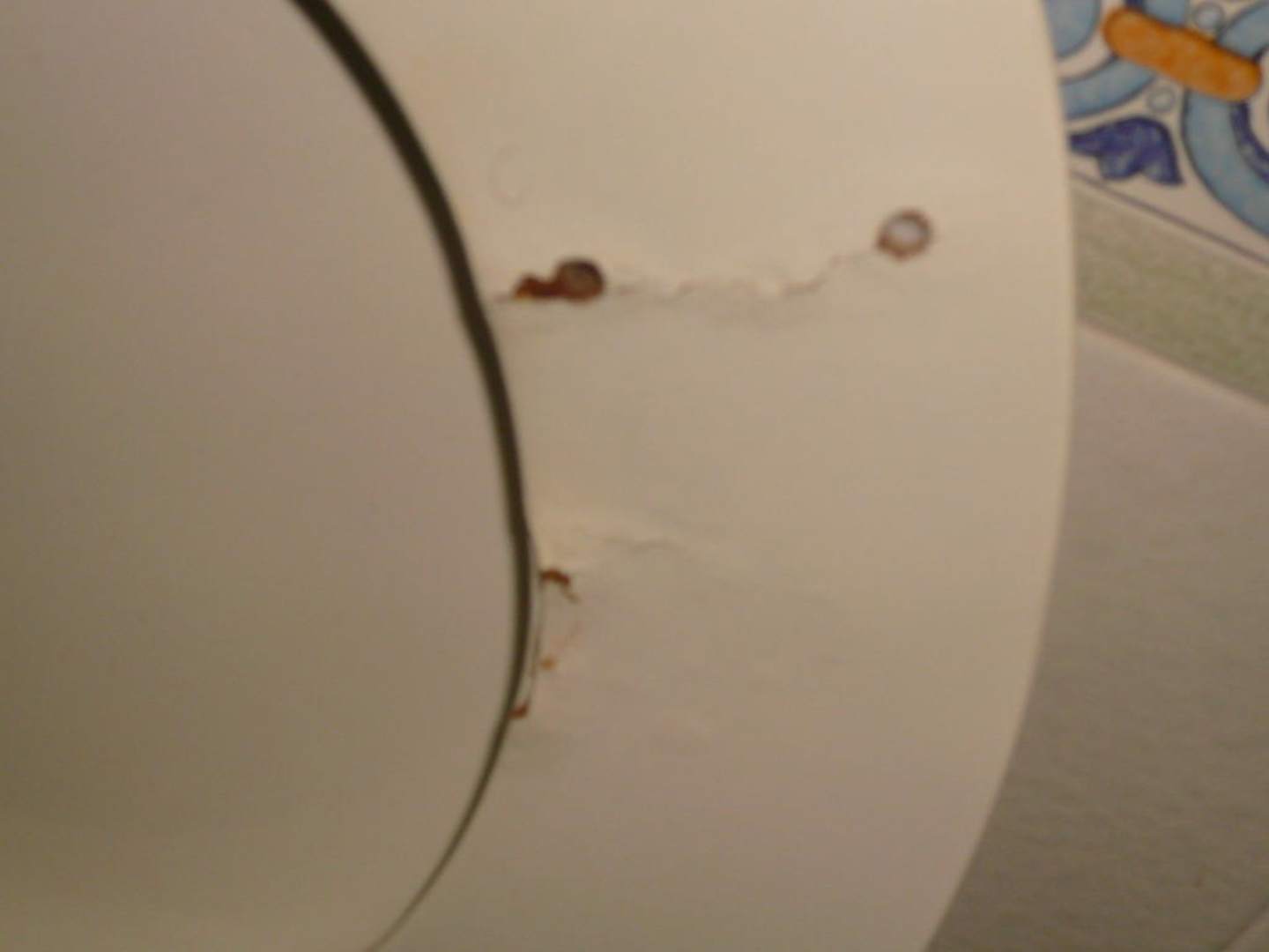 Beschädigter ToilettendeckelUnterseite des Toi-Deckels; dadurch instabiles Sitzen..