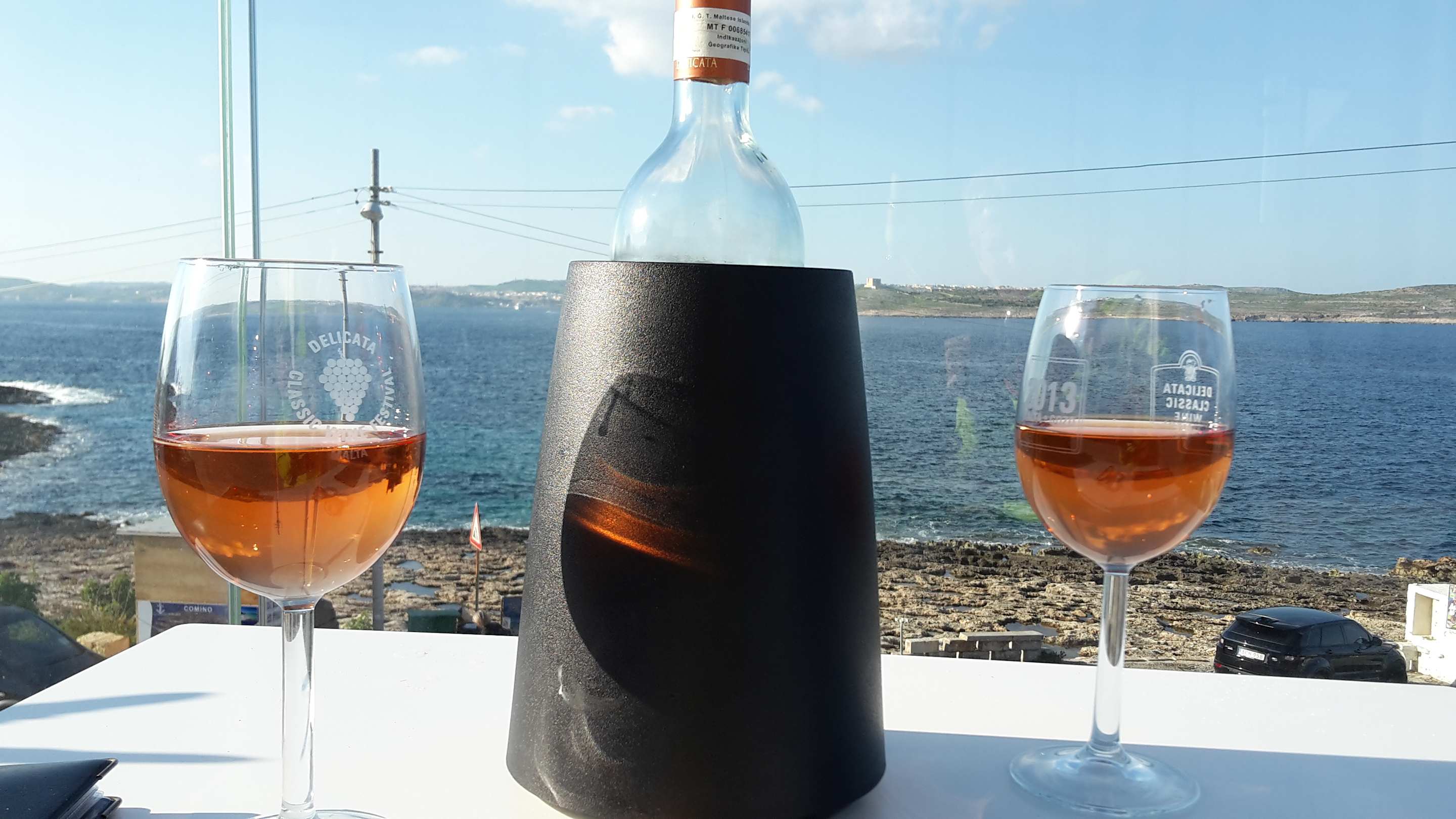 Blick von der Außenterrasse auf Comino und Gozo