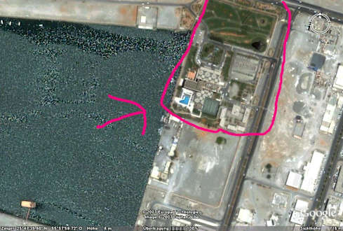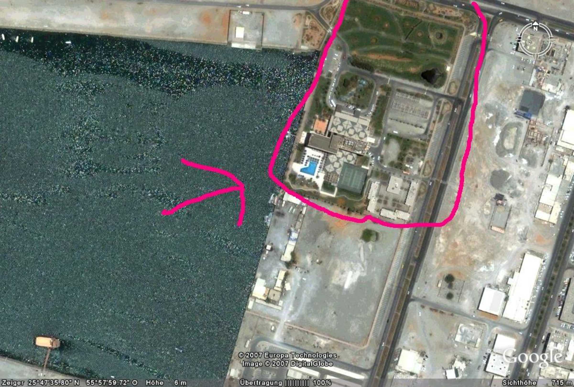 Blick vom HimmelHotel Hilton im Industrieviertel. Copyright by Google Earth
