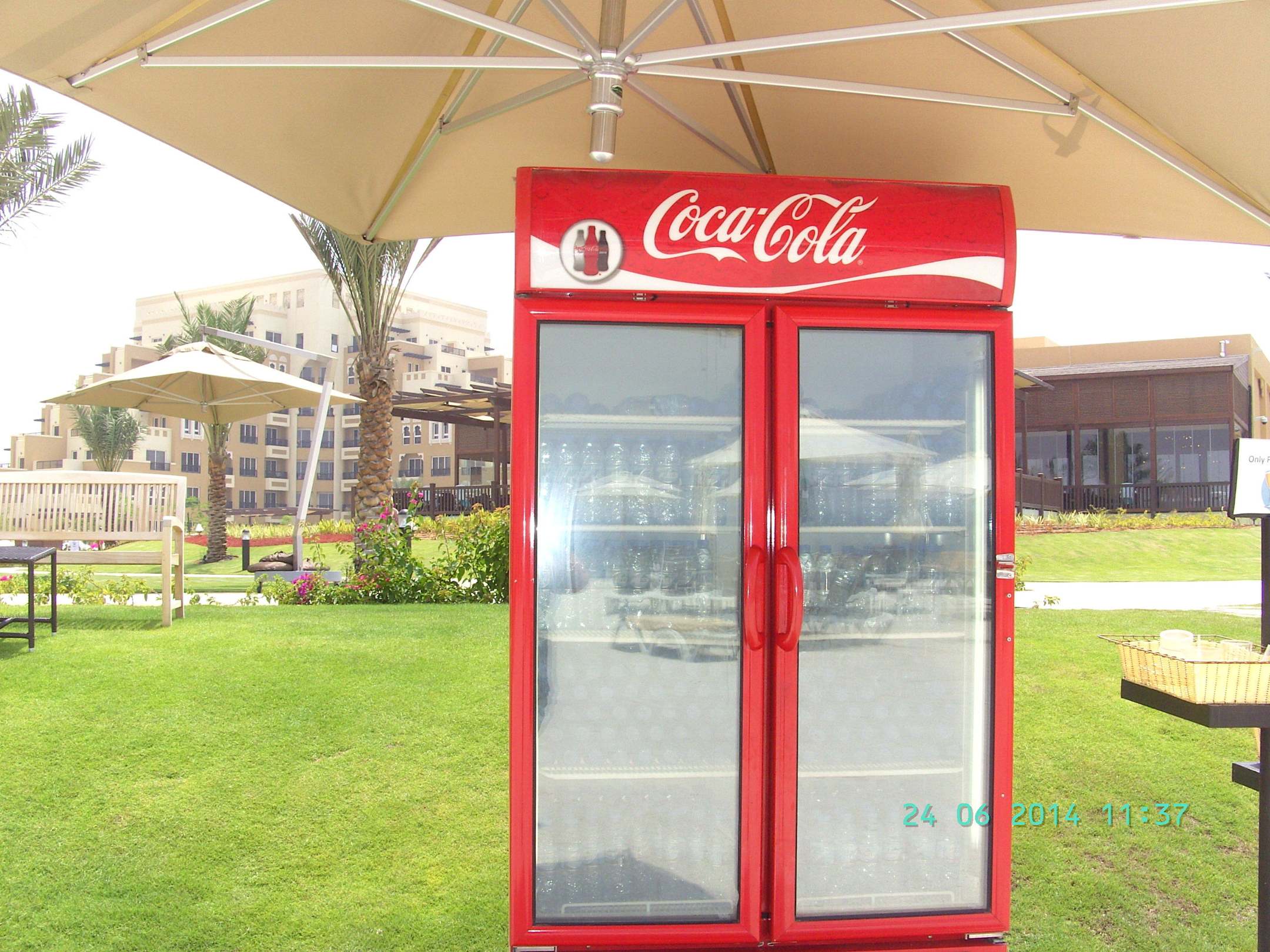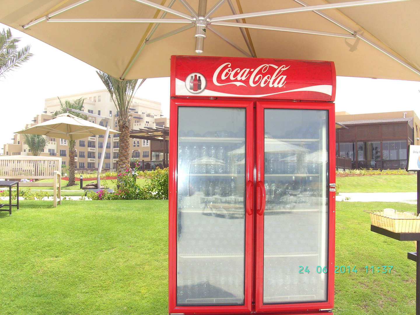 Kühlschrank mit Wasser am Hotelstrand