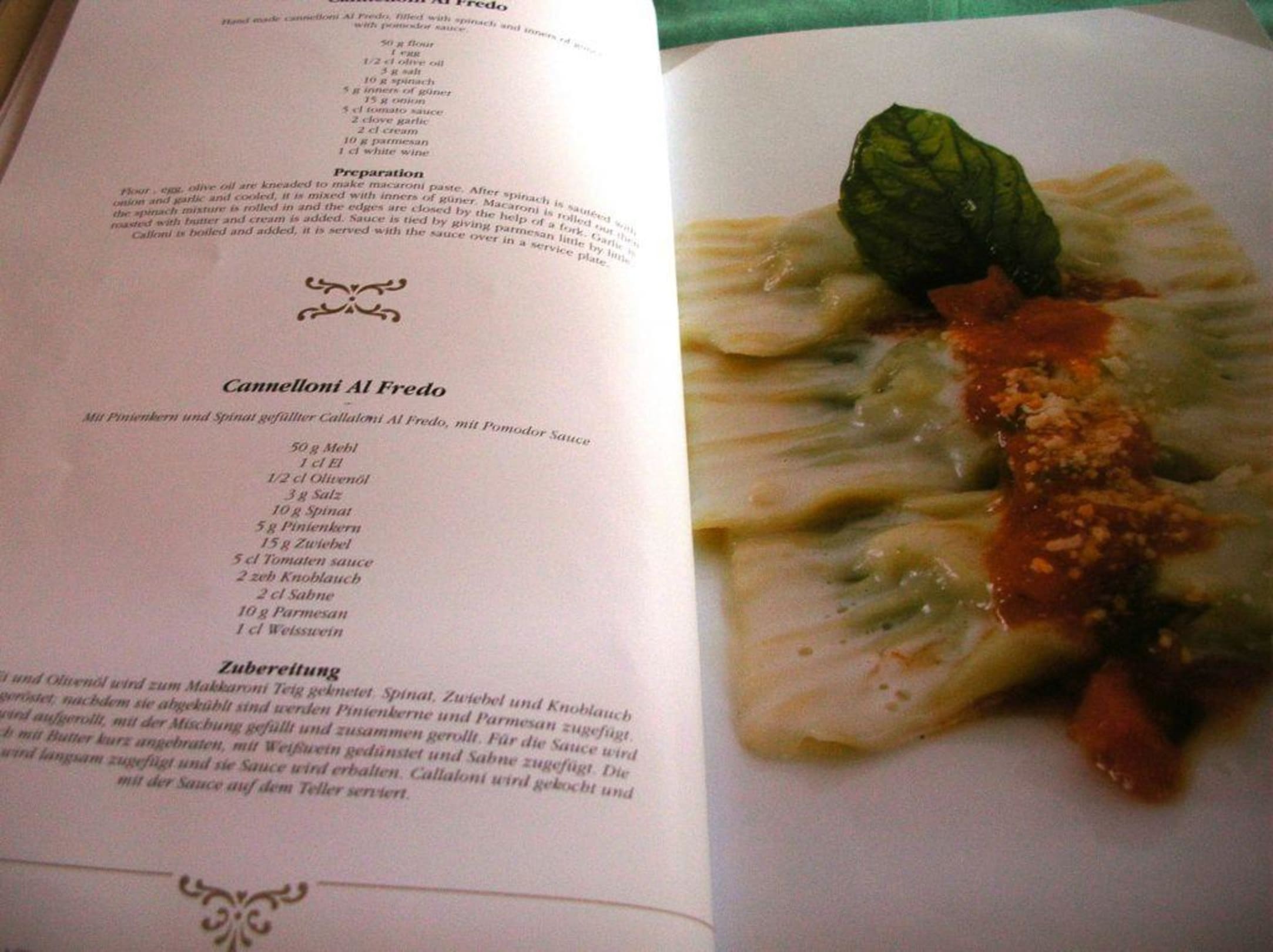Menükarte (Auszug) im Italienischen Restaurant La Rosseta