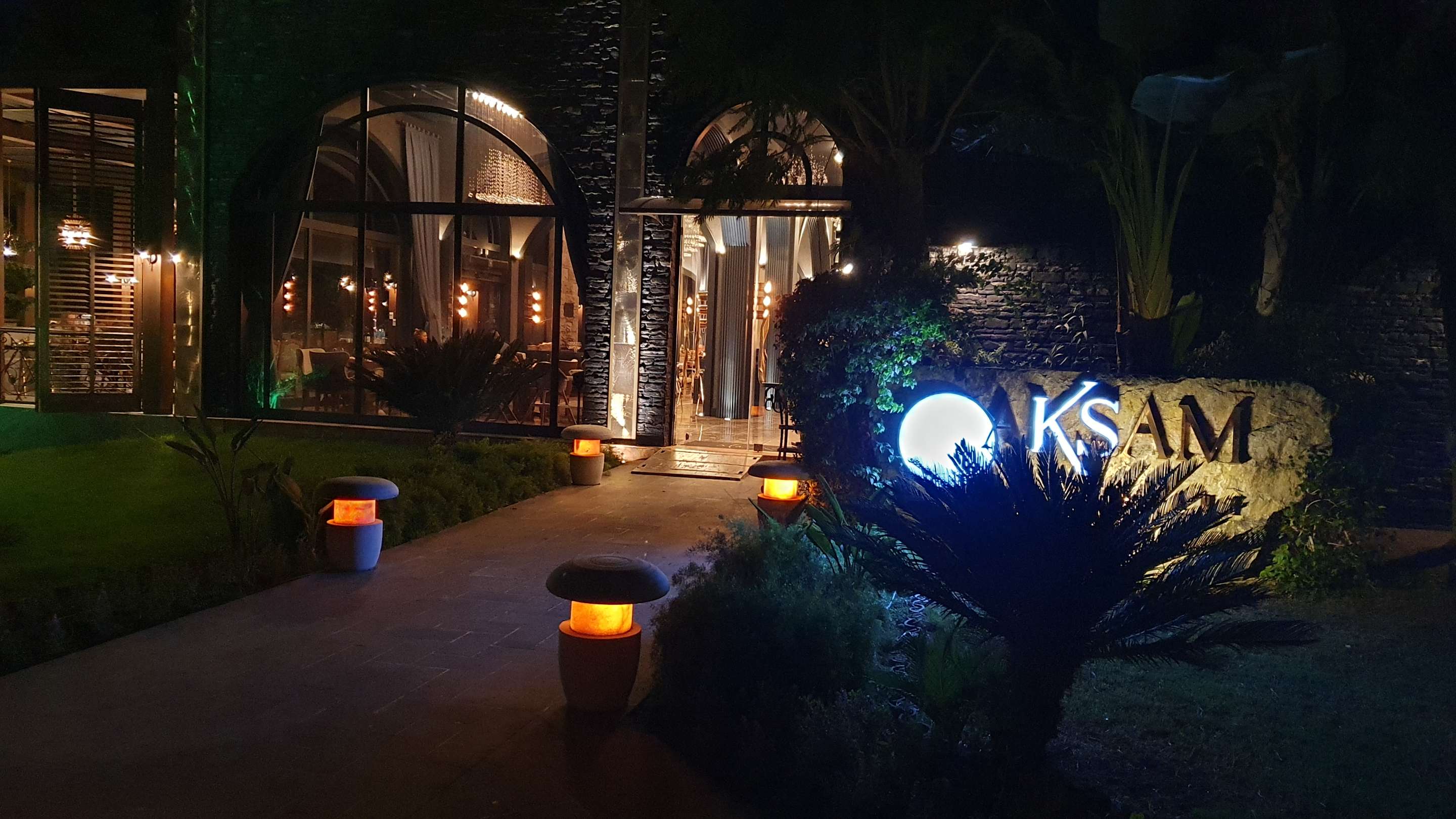 schöner Eingang zum Steakhaus Aksam