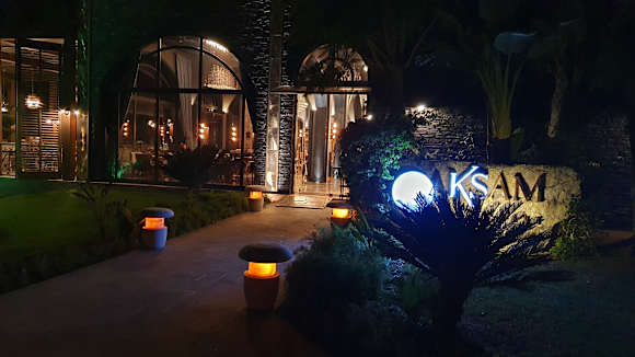 schöner Eingang zum Steakhaus Aksam