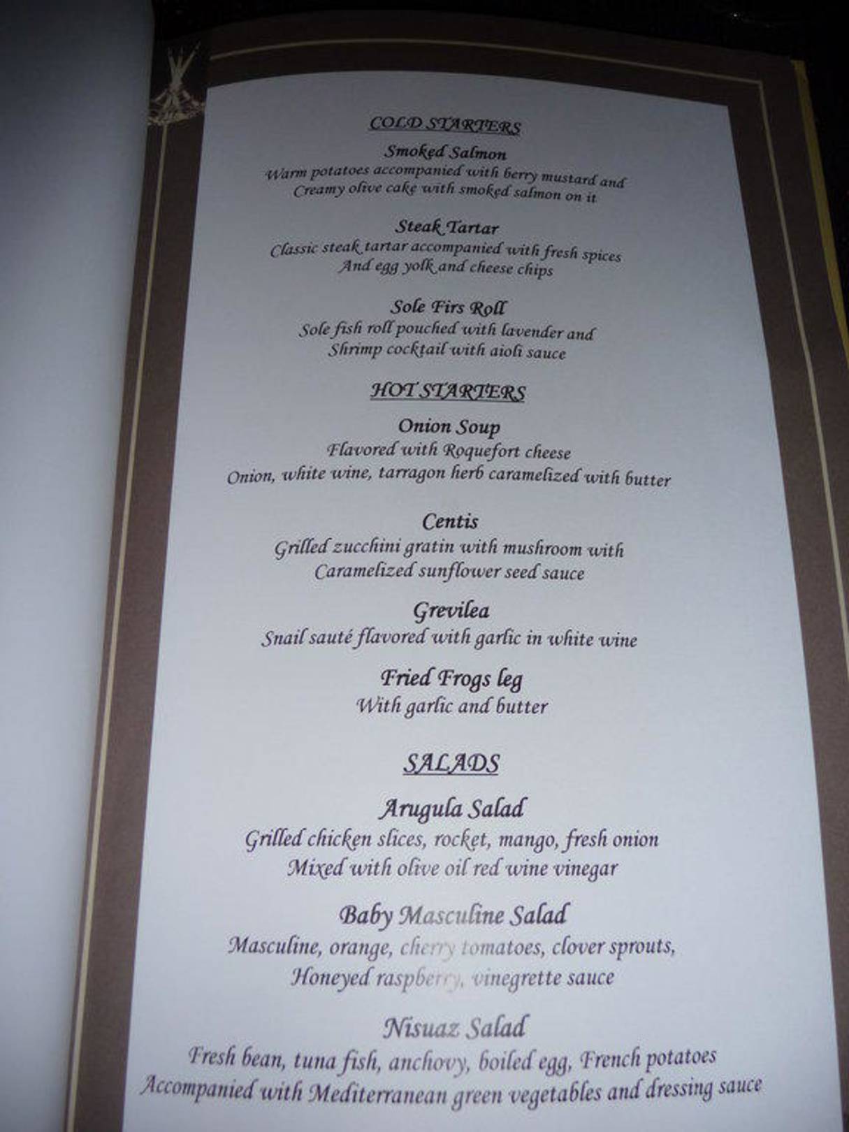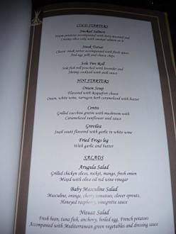 Menukarte franz. Restaurant