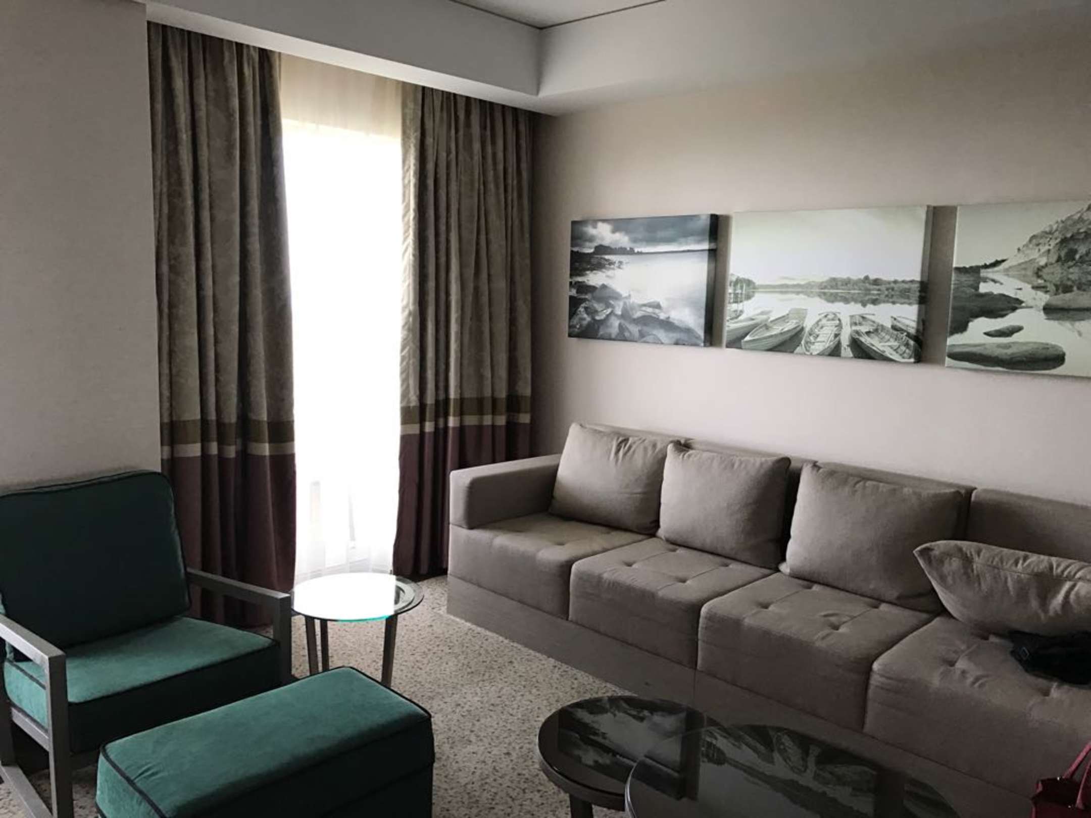 Wohnzimmer mit Zugang zum großen Balkon