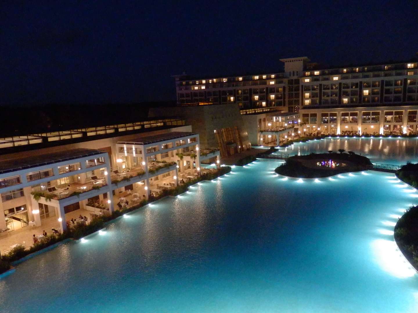 Haupthaus bei NachtWas wie ein Pool aussieht in dem geschwommen werden kann ist nur zur Zierde gedacht.