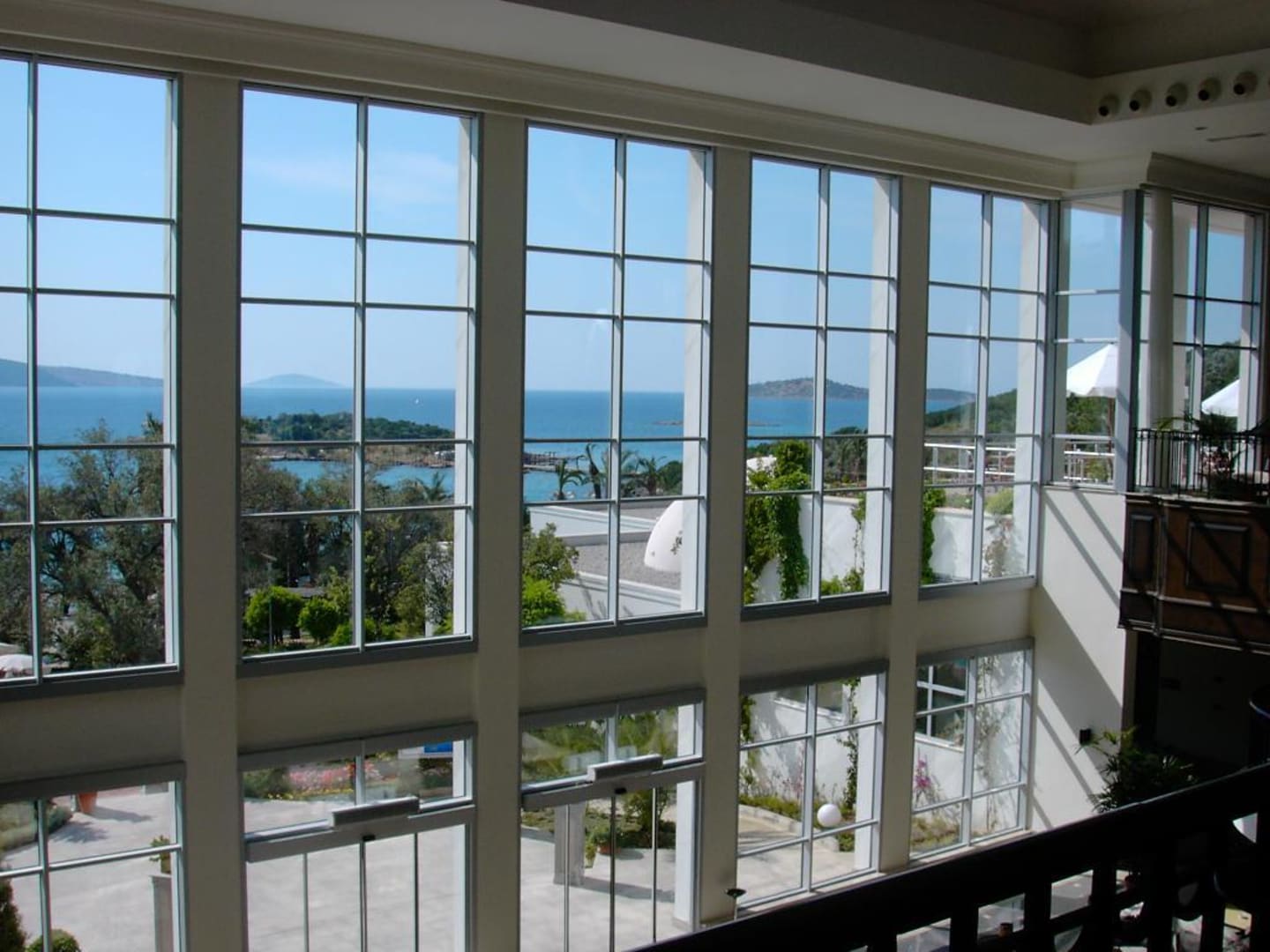Blick von der Lobby auf die hoteleigene Insel (im Vordergrun